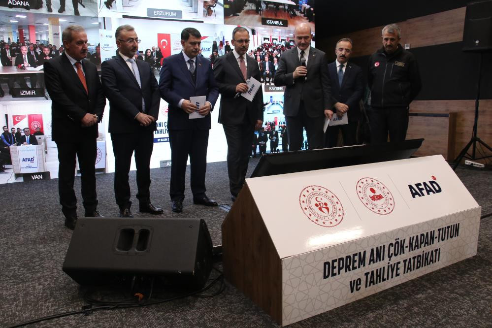 “Türkiye, afetle ilgili herkesin yapacağı görevi hatırlatan planları sağlamaktadır” Tatbikat sonrası açıklamalarda bulunan İçişleri Bakanı Süleyman Soylu, “Türkiye; gerek afetlere hazırlık, gerek anında, öncesinde ve sonrasında yapılabilecekler konusunda sivil veya resmi bütün unsurları harekete geçirebilecek herkesin yapacağı görevi hatırlamakta, hem de planlar çerçevesinde bunu sağlamaktadır” değerlendirmesinde bulundu. “Dünyada bu konuda en önde gele ülkelerden birisiyiz”