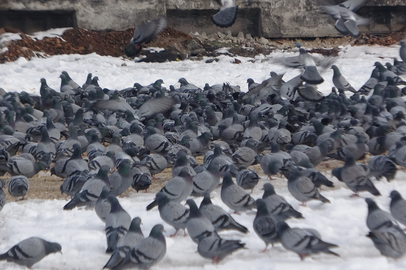 Van’da yıllar önce bölgede bulunan buğday pazarından dolayı İpekyolu ilçesindeki Ahmed-i Xani Parkını mesken edinen binlerce güvercin, özellikle kış mevsiminde yiyecek bulmakta zorlanıyor. Barınak edindikleri çatılarda yem bekleyen kuşları çay ocağı işletmecisi Mevlüt İzci besliyor.
