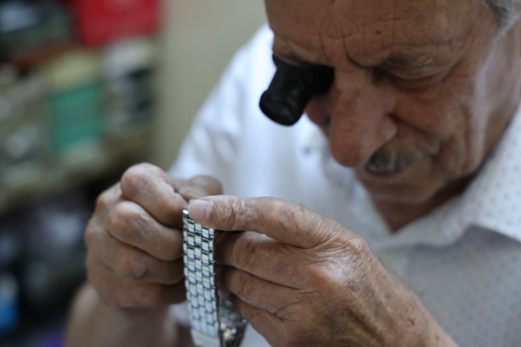 58 yıl boyunca hem mesleğine hem de zamana tanıklık eden Ayçiçek, küçük dükkanında zamanı tamir etmeye devam ediyor.