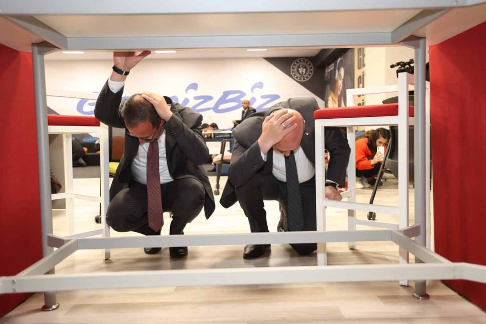 Gençlik ve Spor Bakanı Mehmet Muharrem Kasapoğlu ile İçişleri Bakanı Süleyman Soylu, ülke genelindeki yurtlarda afet ve acil durumlarda yapılması gerekenlere yönelik "Deprem Anı Çök-Kapan-Tutun ve Tahliye Tatbikatı" bilgilendirme toplantısına katıldı.