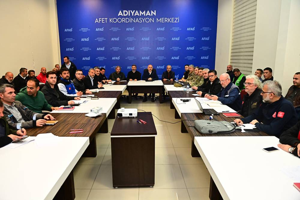 Bakan Karaismailoğlu, Adıyaman Üniversitesi kampüsünde yer alan Afet Koordinasyon Merkezi'ndeki toplantıya başkanlık etti.