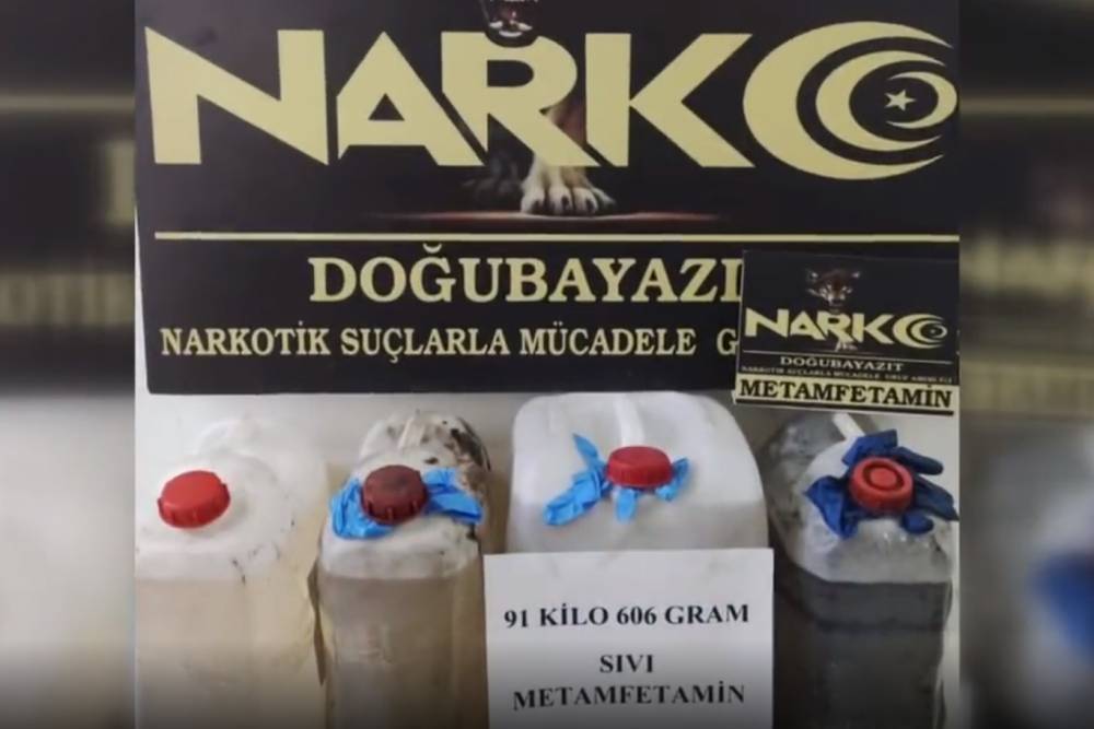 Yapılan aramada tırın yedek yakıt deposunda 91 kilo 606 gram sıvı metamfetamin ele geçirildi.