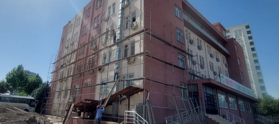 Şehmus Özer Tesisleri, Talaytepe mevkiinde bulunuyor ve ilk etapta dış cephe çalışmaları için iskele kurulumu tamamlandı. İç taraftaki iyileştirme çalışmaları da hızla ilerliyor.