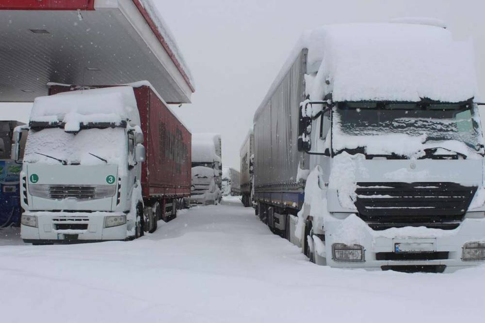 Yoğun kar, buzlanma ve tipinin etkili olduğu kara yolu, tır geçişine kapatıldı.