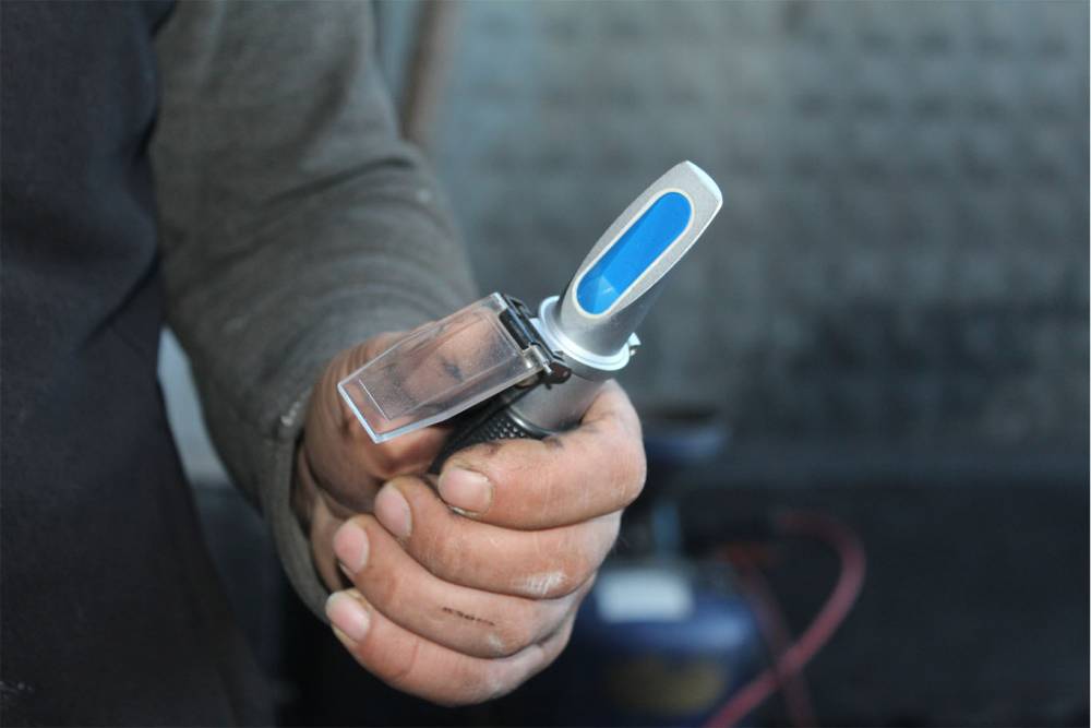 Refraktometre ile ölçüm yaptıklarını aktaran Türkmen, sıvıdaki su oranını ölçen bu cihazla antifiriz ölçümü yaptıklarını ve saf antifirizlerin etkisinin -70’lere kadar olduğunu söyleyerek saf antifirizdeki kullanımımın amacının araç içerisindeki parçaların çürümemesi olduğunu aktardı.
