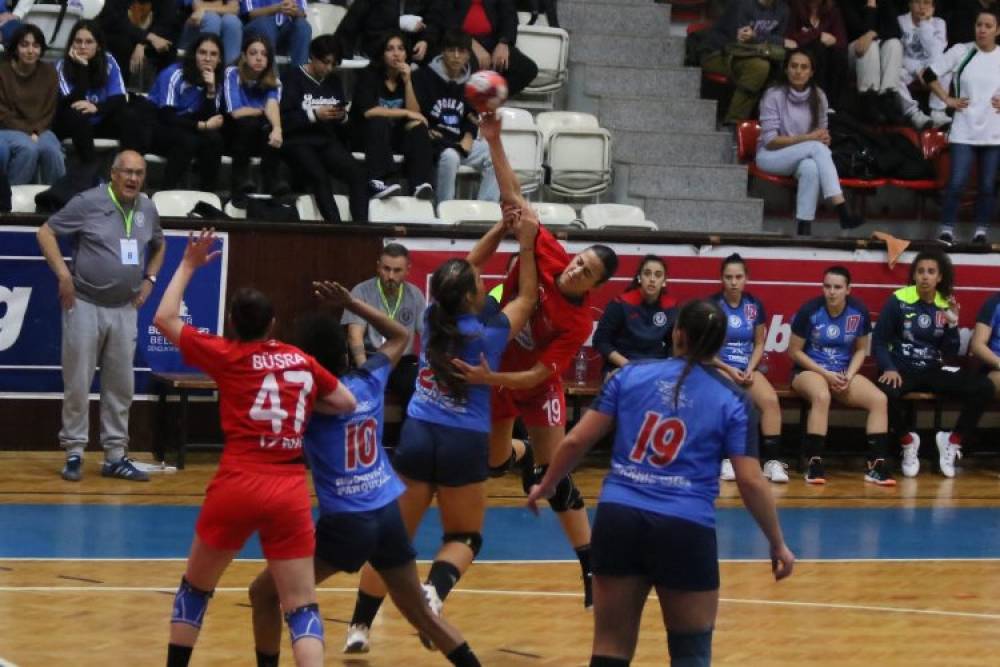 İZMİR (İGFA) - İzmir Büyükşehir Belediyesi Gençlik ve Spor Kulübü Hentbol Kadın Takımı, Avrupa Hentbol Federasyonu Avrupa Kupası (EHF European Cup) 3. tur rövanş maçında Portekiz ekibi Ada De Sao Pedro Do Sul’u 29-27’lik skorla mağlup etti. İlk karşılaşmayı da 30-25’lik skorla kazanan takımımız, Avrupa Kupası’nda adını son 16 takım arasına yazdırdı. Celal Atik Spor Salonu’ndaki çekişmeli geçen karşılaşmanın ilk yarısını takımımız, 14-13’lük skorla önde kapattı. İkinci 30 dakika sonunda takımımız, sahadan 29-27’lik skorla galibiyetle ayrıldı ve adını son 16 takım arasına yazdırmayı başardı. Maçta Sibel Kıcıroğlu 8, Ecem Birben , İlayda Baktır ve Yeliz Özel 4’er, Büşra Işıkhan 3, Ece Sözmen ve Burcu Dindar 2’şer, Yasemin Özgür ve Halime İslamoğlu 1’er golle oynadı. İzmir Büyükşehir Belediyesi Gençlik ve Spor Kulübü Başkanı Ersan Odaman ve Ada De Sao Pedro Do Sul Başkanı Adehno Amorim birlikte karşılaşmayı izledi.