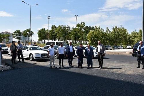 Bağlar Belediye Başkanı Hüseyin Beyoğlu,AK Parti Genel Merkez Yerel Yönetimler Başkan Yardımcısı ve Bölge Koordinatörü Veli Böke ile birlikte 1400 ton asfaltın serildiği cadde ve sokaklarda incelemelerde bulundu.