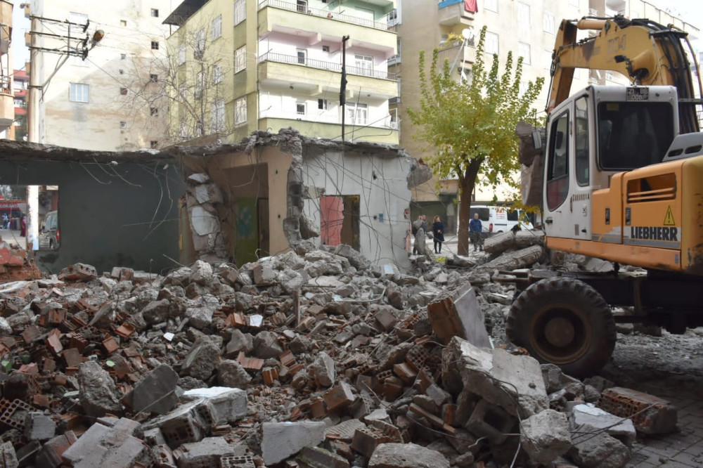 Olumsuz Görüntülerle Gündeme Gelen Yapı Yıkıldı Bağlar Belediyesi, yeni bir kararla ilçede vatandaşların huzurunu kaçıran ve ilçenin esteğini bozan metruk yapılardan 20’sini daha yıkmaya başladı. Belediye, suç unsurları tarafından kullanıldığı için vatandaşların şikayetine konu olan yapılar için yıkım sürecini hızlandırarak yeni kararlar alırken, bu kararlar zaman kaybedilmeden uygulamaya konuldu. Bu yapılar arasında yer alan 5 Nisan Mahallesi 792.sokakta bulunan harabe yapı belediye ekiplerinin çalışmalarıyla yıkıldı. Bağlar Belediye Başkanı Hüseyin Beyoğlu, iş makineleri tarafından gerçekleştirilen yıkım çalışmalarını yerinde takip ederek ekiplere talimatlar verdi.