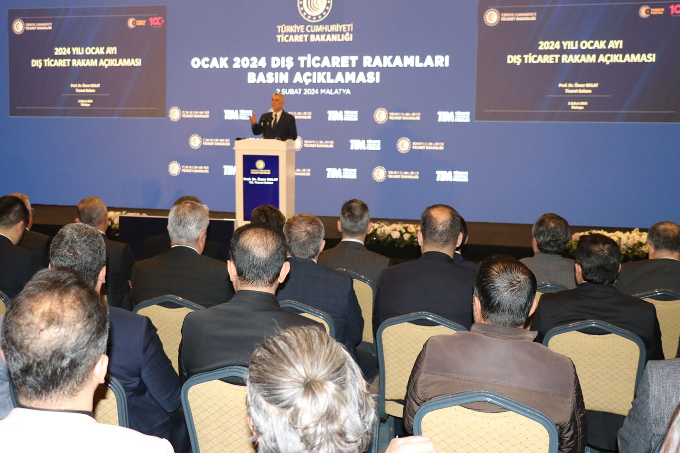 Ticaret Bakanı Ömer Bolat, Türkiye’nin Ocak 2024 yılı dış ticaret rakamlarını açıklamak ve bir dizi ziyaret ve incelemelerde bulunmak üzere Malatya'ya geldi.
