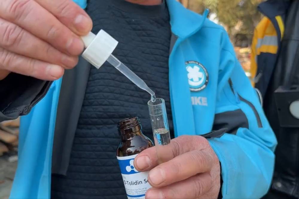 "Çevre sağlığı ekiplerimiz Hatay’da su güvenliği için çalışmalarını sürdürüyor. Depremden etkilenmeyip şebeke suyu verilen bölgelerden test için alınan numuneler Sahra Hastanesi bünyesinde kurulan Laboratuvara götürüyor. Suyun kullanıma uygunluğu bu testler sonucu tespit ediliyor.