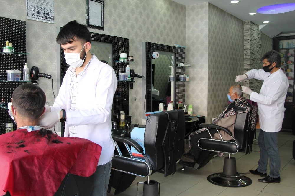 Bingöl’de dezenfekte işlemlerinin ardından berberler açıldı, ilk tıraşlar yapıldı. Ülke genelinde olduğu gibi Bingöl’de de Korona virüs salgını nedeniyle daha önce alınan sıkı tedbirler normalleşme planı çerçevesinde hareket edilerek esnekleştirilmeye başlandı. Bu kapsamda ilk olarak kente 25 Mart’ta kapanan berber, kuaför ve güzellik merkezleri açıldı. Sabahın erken saatlerinde Bingöl Belidiyesi’ne bağlı ekipler, berberlerde dezenfekte çalışması yaptı. iş yerlerinin açılmasıyla berberler de ilk tıraşlarını gerçekleştirdi. 50 gün sonra yeniden iş başı yaptıklarını belirten berberlerden Nihat Çengiz, “ Salgın nedeniyle bakanlığımızın talimatı gereği işletmelerimizi kapatmıştık. Bugün yeniden hijyen kurallarına uygun bir şekilde açtık ve ilk tıraşımızı yaptık. Randevu sistemi ile müşterileri alıyorum, içeri 1’den fazla da kimseyi almıyorum. Allah’ın izniyle sağlıkçılarımızın verdiği mücadele ve bizim tedbirlerimizle bu salgından kısa süre içinde kurtulacağız inşallah” dedi. Berberlere gelen vatandaşlarda, alınan tedbir kararlarına uyarak tıraş olduklarını aktardı.
