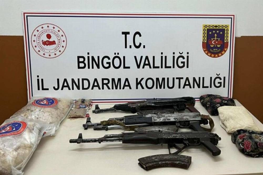 Bingöl'ün Genç ilçesi kırsalında bölücü örgütüne ait toprağa gömülü vaziyete bulunan jelikan içerisinde 3 adet kalaşnikof, mermiler ve patlayıcı madde ele geçirildi.