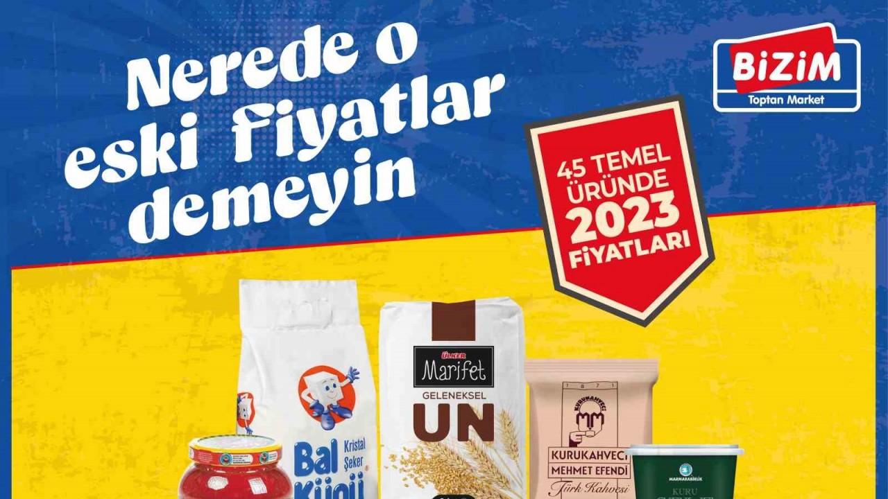 Türkiye’nin en yaygın organize toptan marketi Bizim Toptan, 2024 yılının ilk büyük kampanyasını “Nerede O Eski Fiyatlar” diyenler için başlattı. Yeni kampanya kapsamında 8 Şubat-8 Mart 2024 tarihleri arasında un, şeker, çay, zeytin, bakliyat, deterjan, şampuan gibi hanelerin en temel ihtiyaçları arasında yer alan toplam 45 ürün, 2023 yılı fiyatlarıyla Bizim Toptan mağazalarında ve ‘bizimtoptan.com.tr’de bireysel müşterilere satışa sunuluyor. Yıl boyunca toptan fiyatına sattığı ürünleri ve düzenlediği kampanyalarla müşterilerinin yanında olan Bizim Toptan, bu yeni kampanyasıyla da müşterilerinin bütçesine ve enflasyonla mücadeleye katkı sağlamaya devam ediyor.