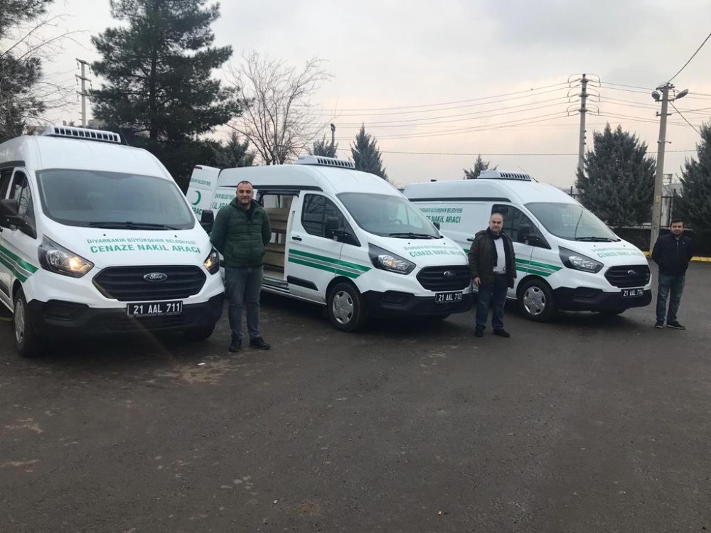 Araç filosunu vatandaşların ihtiyaçlarını göz önünde bulundurarak güçlendiren Diyarbakır Büyükşehir Belediyesi, Alo 188 Cenaze Nakil Araç filosuna 3 yeni araç daha kattı. Defin ve mezarlık hizmetlerini ücretsiz şekilde gerçekleştiren Diyarbakır Büyükşehir Belediyesi Sağlık İşleri Daire Başkanlığı, vatandaşların ihtiyaçlarını göz önünde bulundurarak 3 yeni cenaze nakil aracı daha satın alarak Alo 188 Cenaze Nakil Araç filosunu büyüttü. Aynı anda 2 cenazeyi taşıma kapasitesine sahip yeni araçlar 7 gün 24 saat ücretsiz hizmet verecek. Yeni satın alınan ve daha önce araç filosunda yer alan cenaze nakil araçları, kent merkezi, dış ilçeler ve şehirlerarası defin işlemlerinde vatandaşlara ücretsiz hizmet verecek. Vatandaşlar, Alo 188’i arayarak araçlardan ücretsiz şekilde yararlanabilecek ve aynı zamanda görevli bulunan otobüslerde cenaze sahiplerini, defin işleminin yapılacağı yere ücretsiz taşıyacak. Daha önce kent merkezinde 3, ilçelerde 14 olmak üzere toplam 17 adet cenaze nakil aracıyla hizmet veren Diyarbakır Büyükşehir Belediyesi, yeni satın aldığı 3 cenaze nakil aracıyla sayıyı 20’ye çıkardı. Yeni satın alınan aynı anda 2 cenazeyi taşıma kapasitesine sahip araçlar kent merkezinde vatandaşlara hizmet verecek. Diyarbakır Büyükşehir Belediyesi, araçlarla yapılan nakiller dışında gelen talepleri değerlendirerek cenazeleri hava yolu ile istenilen kentte ücretsiz taşımaya devam ediyor.