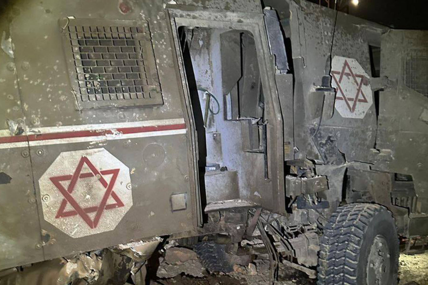 17 işgal askeri yaralandı. Yaralılar arasında durumu ağır olanlar bulunuyor. Saldırının ardından askeri aracın kalıntıları ortaya çıktı.