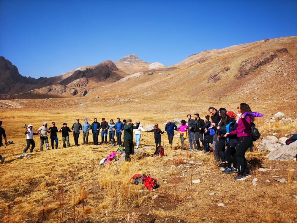 HAKKARİ (İHA) – Hakkari’deki Cilo Sat Gölleri ve Buzulları Dağcılık ve Doğa Sporları Derneği (CİSAD) öncülüğündeki 50 kişilik ekip, Berçelan Yaylası’nın batısında bulunan ve yüksekliği 3764 metre olan Karadağ’ın zirvesine tırmanış gerçekleştirdi. Hakkari il merkezi ve Yüksekova ilçesinden gelen elli doğasever, CİSAD önünde bir araya gelerek kiraladıkları araçlarla Berçelan Yaylası’na hareket ettiler. Yapmış oldukları kahvaltıdan sonra Karadağ zirvesine yürüyüşe geçen kalabalık ekip, zirvede öğle yemeğini yedi. Havanın bir anda bozulup yerini kar yağışına bıraktığına aldırış etmeyerek zirve defterine isimlerini yazdırarak CİSAT pankartını açan dağcılar, fotoğraf çektirdikten sonra inişe geçtiler. Araçların bulunduğu yaylaya geldikten sonra kar yağışı yerini yağmura bıraktığını gören doğaseverler, araçlarla akşama doğru Hakkari il merkezine ulaştılar. Derneğin kurucu üyelerinden Naci Ertunç, ilk defa elli kişilik kalabalık bir ekibi Karadağ zirvesine götürdüklerini söyledi. Ertunç, "Herhangi bir aksilik yaşanmadan ekibin tamamı zirve yaptı. CİSAD kurulduktan bu yana dağcılıkta ön plana çıkarak yapmış olduğumuz etkinliklerde, katılımcılara doğayı tanıtmış ve dağcılık sporunu aşılamaktır. Gün geçtikçe yaptığımız her faaliyette katılımcı sayısının katlanarak yükselmesine hepiniz şahit oluyorsunuz. Yapmış olduğumuz spor faaliyetlerini kesintisiz sürdürmeyi planlıyoruz” dedi. Sayıları elli olan katılımcıların yüzde 40’ının kadınlardan oluştuğuna dikkat çeken Ertunç, “Bayan kardeşlerimizi her faaliyette görmek istiyoruz. Amacımız dağcılık sporuna gönül verenlere yardımcı olmaktır" şeklinde konuştu. Dağcılardan Avukat Turgut Besi ise, “Berçelan-Karadağ zirve faaliyetinde katılımcı listesinde çıkan sorunların giderilmesinde bizlere desteklerini sağlayan başta Belediye Başkanımız Cüneyt Epcim, Yarbay Kubilay Önal ve Emniyet Müdür Yardımcısı Mustafa Dursun’a CİSAD ekibi adına teşekkür ederim” dedi.