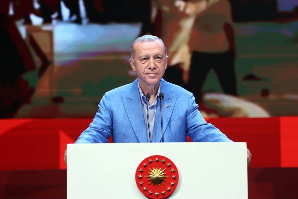 Erdoğan, "Ülkemiz 14 Mayıs seçimleriyle bir demokrasi şölenini daha alnının akıyla tamamlamıştır. Henüz kesin sonuçlar belli olmamakla beraber açık ara önde bulunuyoruz. Kazanan, seçim tablolarının göstereceği rakamların ötesinde tartışmasız bir şekilde ülkemiz, milletimiz olmuştur. Dünyada benzeri yok, tarihimizin en yüksek katılımlı seçimlerinden birini yaşadık." dedi.