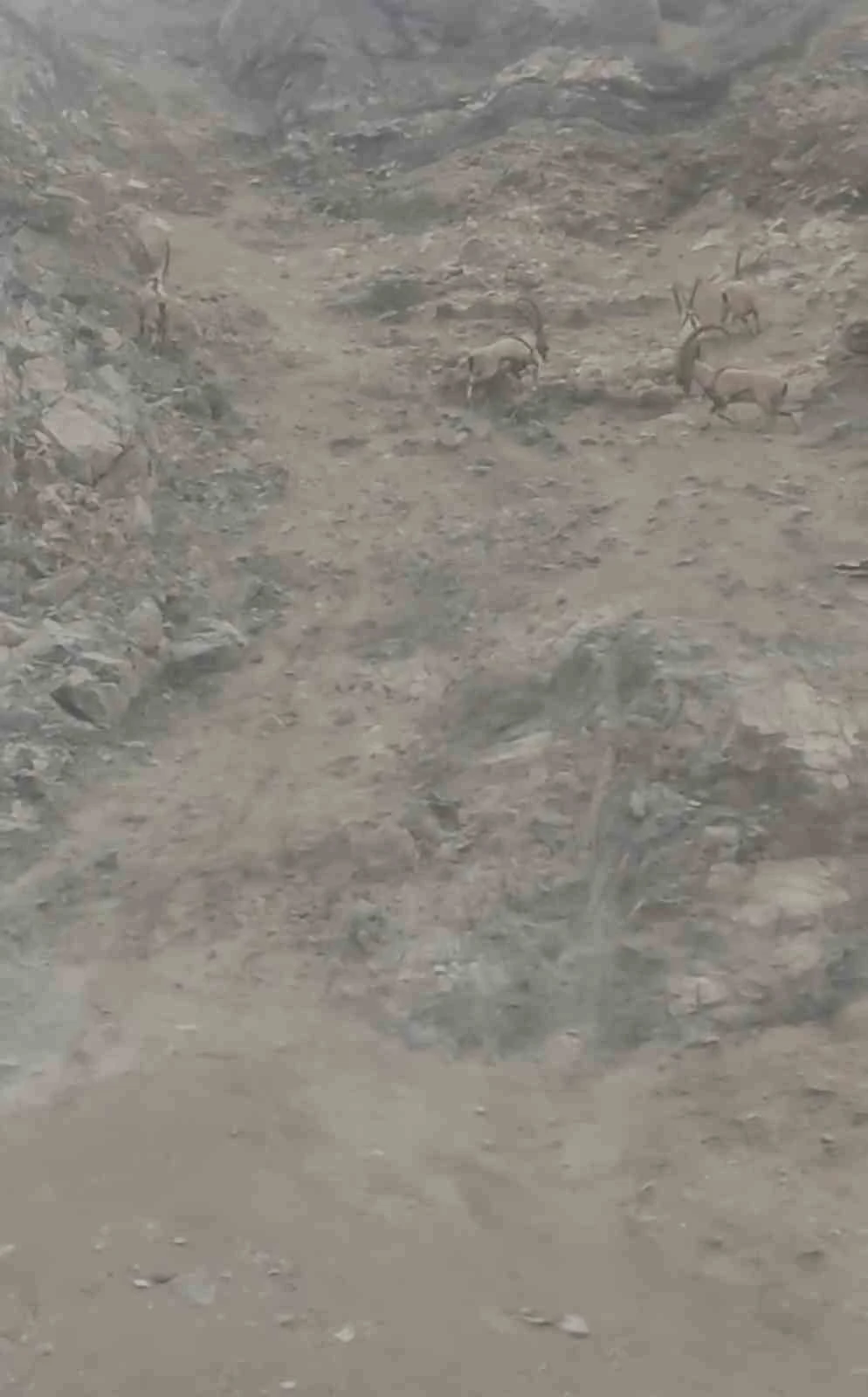 Sabah saatlerinde Muzaffer Bayram isimli vatandaş tarafından cep telefonu kamerası ile görüntülenen dağ keçileri, sarp kayalıklarda ustaca gezip yiyecek aradı. Muzaffer Bayram, "Aracımla Çüngüş ilçemizden eve dönüyordum. Yol kenarına yaklaşan 5 dağ keçisini gördüm. Ben de hemen aracımı yol kenarına çekip bu güzel hayvanları cep telefonu kameramla kaydettim. Dağ keçileri büyük ve besiliydi. Doğanın dengesinin korunması için insanların bu hayvanlara zarar vermemesini istiyorum" dedi.