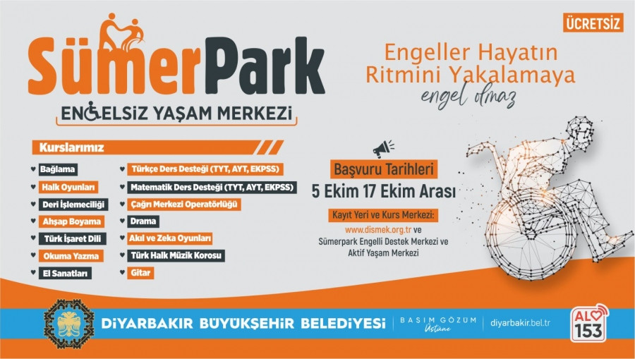 Sosyal Hizmetler Daire Başkanlığı’nın Sümerpark Ortak Yaşam Alanı’nda 12 farklı branşta açacağı kurslardan farklı engel grubundaki bireyler yararlanacak.Kurslarda, Bağlama, Halk oyunları, Deri işlemeciliği, Ahşap Boyama, Türk İşaret Dili, Okuma-Yazma, Türkçe ders desteği (TYT, AYT, EKPSS),