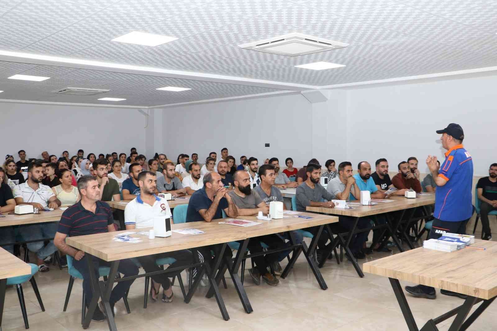 Diyarbakır Organize Sanayi Bölgesi’nde gözlük çerçevesi üreten bir firmada AFAD ve Diyarbakır Büyükşehir Belediyesi İtfaiye Ekipleri tarafından, fabrikada çalışan personele önce eğitim verildi sonra da yangın tatbikatı yapıldı. Organize Sanayi Bölgesi 3. etapta gözlük çerçevesi üreten bir firmada AFAD ve İtfaiye Daire Başkanlığı’na bağlı ekipler, fabrikada çalışan işçi ve yöneticilere eğitim verdi. AFAD uzmanları, doğal afetler hakkında detaylı bilgiler vererek, özellikle deprem öncesinde ve sırasında alınacak önlemler ile deprem sonrası yapılacak işlerle ilgili uygulamalı olarak eğitim verdi. Daha sonra İtfaiye Eğitim Amiri Veysel Murat Tapan, yangın çıkış sebepleri, yangın çeşitleri ve yangına müdahale ile yangın sonrası yapılması gerekenleri detaylarıyla ve uygulamalı olarak anlattı. Verilen eğitim sonrası, fabrika üretim alanında, suni duman verilerek yangın tatbikatı yapıldı. Sözde yangın sırasında çalışanların, neler yapması ve hangi güzergahları kullanmaları gerektiği gösterildi. Eğitim ve tatbikat sonrası, AFAD ve itfaiye ekipleri ile fabrika çalışanları ve yöneticileri, toplu olarak hatıra fotoğrafı çekti. Eğitim ve tatbikatı, AFAD İl Müdürü İlami Çakmak, İtfaiye Daire Başkanlığı Arama-Kurtarma Şube Müdürü Nedim Erig ve Organize Sanayi Bölgesi Müdürlüğü teknik ekip ve uzmanları izledi.
