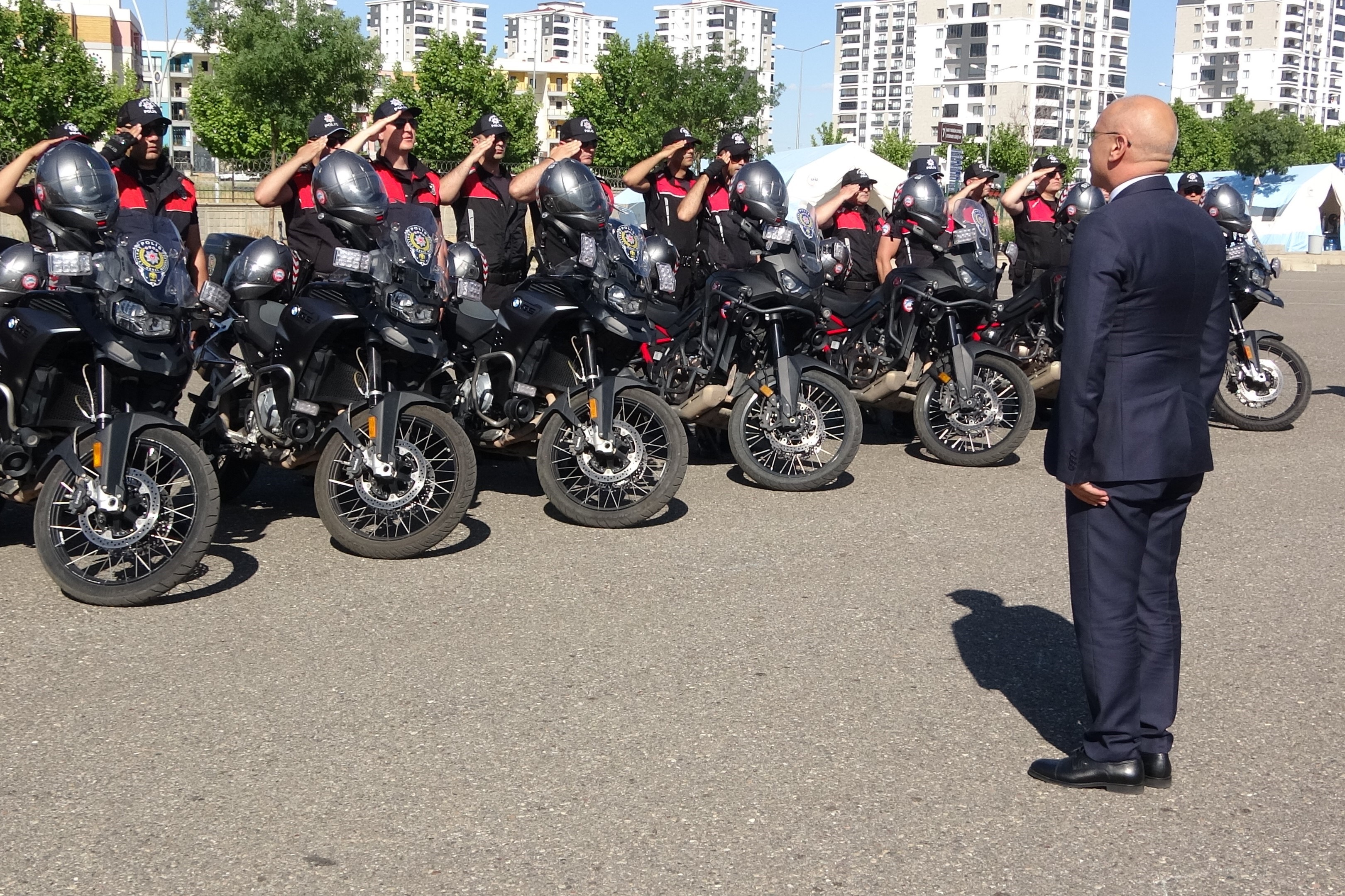 Diyarbakır’da, 10’uncu dönem eğitimini başarıyla tamamlayan 5’i kadın 45 Motosikletli Yunus Timi personeli, düzenlenen törenle mezun oldu. Kayapınar ilçesindeki mezuniyet törenine, İl Emniyet Müdürü Fatih Kaya, yardımcıları, şube müdürleri, mezun polisler ve yakınları katıldı. Tören, saygı duruşu ve İstiklal Marşı’nın okunmasıyla başladı.