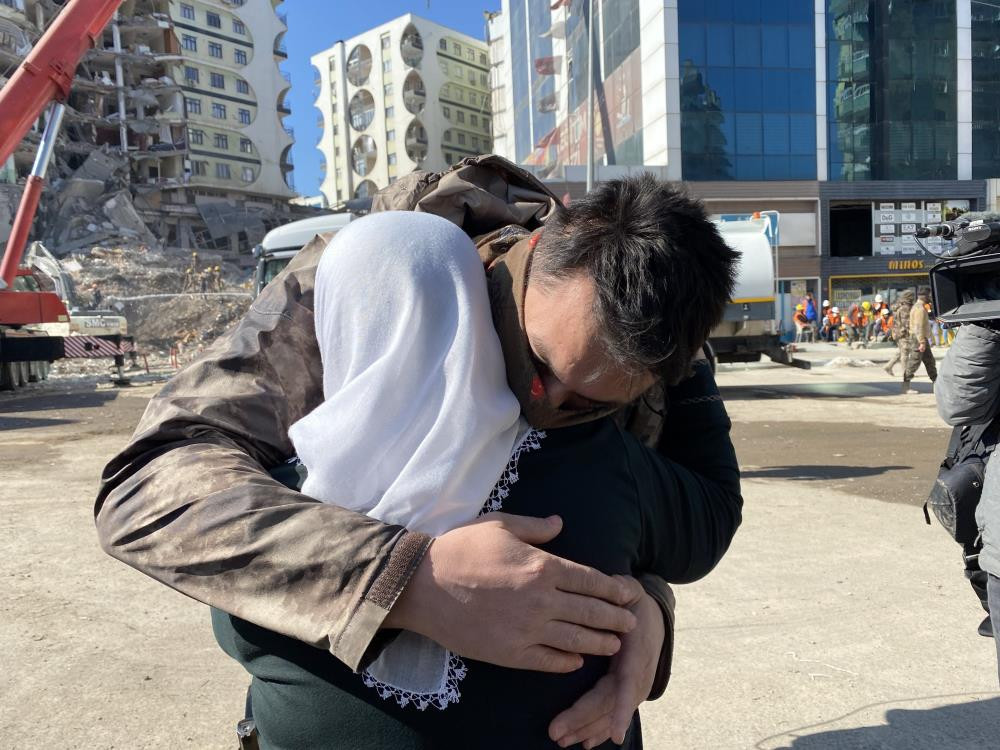 “Kiloluyum evladım, beni indiremezsin dedi” Kurtarma çalışmalarına katılan Özel Harekat Polisi Gökhan Çavuşoğlu ise, kurtarılan Aysel teyzenin kilolu olduğu için sırta binmek istemediğini söyledi. Çavuşoğlu, “Merdiven boşluğundan aşağıya inerken büyük bir blok vardı. 'Ben çok kiloluyum evladım, beni indiremezsin' dedi, ben de 'Merak etme biz yanınızdayız' diyerek büyük bloğun oradan aşağıya indirdim. Orada yaklaşık 50 kişi indirdik. Devletimiz, milletimiz canla başla çalışıyor. Hala enkaz alanındayız” dedi.