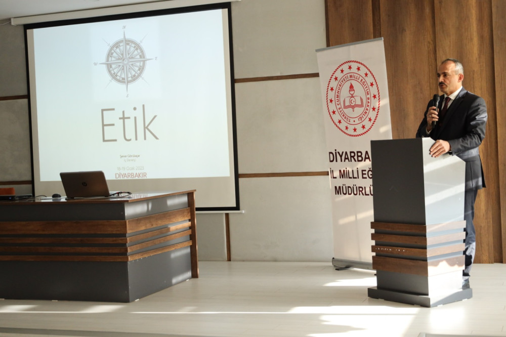 Milli Eğitim Bakanlığı ile T.C. Kamu Görevlileri Etik Kurulu arasında 26.05.2022 tarihinde imzalanan Etik Eğitimi ve Etik Eğitici Yetiştirilmesi Birliği Protokolü kapsamında kamu görevlilerinin etik ilkeleri konusunda farkındalıklını artırmak üzere etik eğitimleri düzenleniyor. Bu eğitimler kapsamda Milli Eğitim Bakanlığı İç Denetçisi Şener Gönülaçar tarafından 18.01.2023 çarşamba günü ilimiz İl Milli eğitim Müdür Yardımcıları, İlçe Milli Eğitim Müdürleri, Eğitim Müfettişleri ve Şube Müdürleri'ne, 19.01.2023 Perşembe günü ise merkez ilçe okul müdürlerine yönelik Büyükşehir Öğretmenevi konferans salonunda 2 gün süren etik eğitimi semineri düzenlendi. Milli Eğitim Bakanlığı İç Denetçisi Şener Gönülaçar'ın 2 gün süren sunumunun ardından seminer İl Milli Eğitim Müdürü Murat Küçükali'nin kapanış konuşmasıyla tamamlandı.