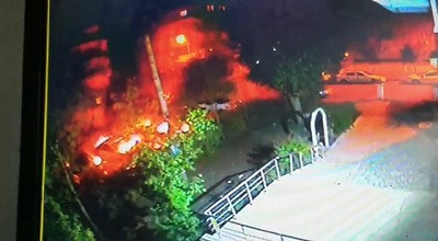Polis, otomobilleri ateşe verip kaçan ve güvenlik kamerasına yansıyan 2 şüphelinin yakalanması için çalışma başlattı.