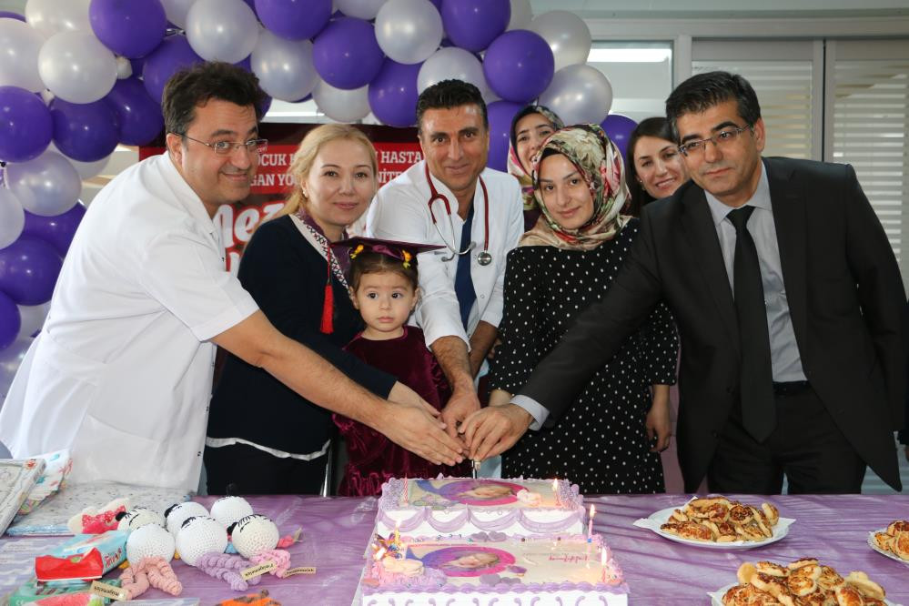 Hastanede düzenlenen mezuniyet töreninin ardından Diyarbakır Çocuk Hastalıkları Hastanesi Başhekimi Uzman Dr. Serhat Samancı ailelere hediyelerini takdim etti.