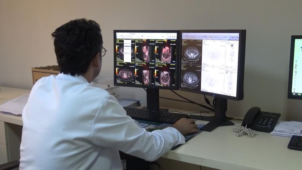 Hastanede yılda 6 bin hastanın tümör taraması amacıyla PET/BT görüntülemesinin yapıldığını söyleyen Kömek, “Hastanemizde ayrıca tiroid kanseri 300 hastaya İyot tedavisi yapılmakta. Yılda 400 hastaya da Lutesyum tedavileri, prostat kanserlerinin nöroendokrin tümörlerinin ya da ağrı palyasyonu amacıyla uygulanmaktadır. Açılımını yaparsak eğer, radyoaktif madde ile işaretlenmiş bir reseptör bağlacını hastanın vücuduna enjekte ediyoruz ve sadece tümörlü alanları tutup tedavi ediyor. Herhangi bir yan etkisi olmadan sadece tümöre spesifik reseptörlere bağlanarak tedavi edildiği için, hedeflenmiş radyoterapi dediğimiz sistemi kullanıyoruz. Bunun yanı sıra yılda yaklaşık 300 hastanın da hipertiroidi tedavisini yapmaktayız” şeklinde konuştu.
