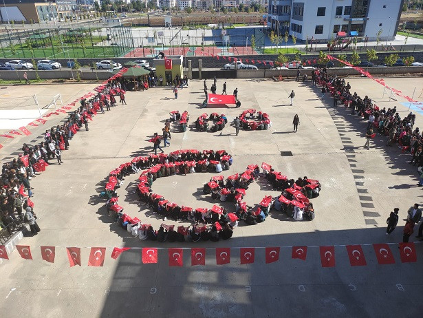 Diyarbakır’da Mehmetçik Anadolu Lisesi Öğrencileri, Türkiye Cumhuriyetinin Kuruluşunun 99. yıldönümünü coşkuyla kutladı. Kutlama töreninde lise öğrencileri tarafından çeşitli etkinlikler düzenlenirken, etkinlikte en dikkat çeken de öğrenciler tarafından oluşturalar 100. Yıl ve Türk Bayrağı gösterisi büyük beğeni topladı.
