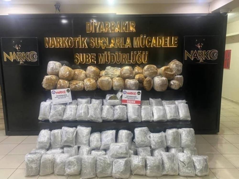 Diyarbakır’da "Kökünü kurutma" operasyonu kapsamından bir araçta yapılan aramada 157 kilo 350 gram skunk ele geçirilirken, 2 şüpheli ise gözaltına alındıığı öğrenildi.Olayla ilgili şüpheli şahsın emniyetteki ifade işlemleri devam ediyor.