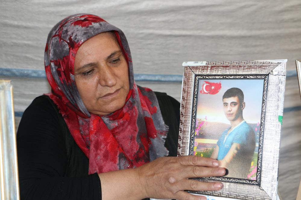 7 yıl önce oğlu Aziz Demir’in HDP tarafından dağa kaçırıldığını iddia eden Güzide Demir, evlat nöbetini kararlılıkla sürdüreceğini söyledi. Demir, “Oğlum için burada evlat nöbeti tutuyorum. 3 senedir biz buradayız, 4'üncü senemize girdik. Çocuklarımız gelene kadar bu mücadelemize devam edeceğiz. Kirli ellerini çocuklarımızın üzerinden çeksinler. Oğlumu dağa götürüp orada mahkum etmişler. Oğlum kandırıldı. Oğlumu almayana kadar buradan bir yere gitmeyeceğim. Aziz, oğlum neredeysen gel güvenlik güçlerine teslim ol. 7 yıla yakındır senin peşini bırakmadım. Orası senin yerin değil, oğlum evine dön. Ceza almadan ailene kavuşacaksın. 37 çocuk ceza almadan ailesine kavuştu” dedi.