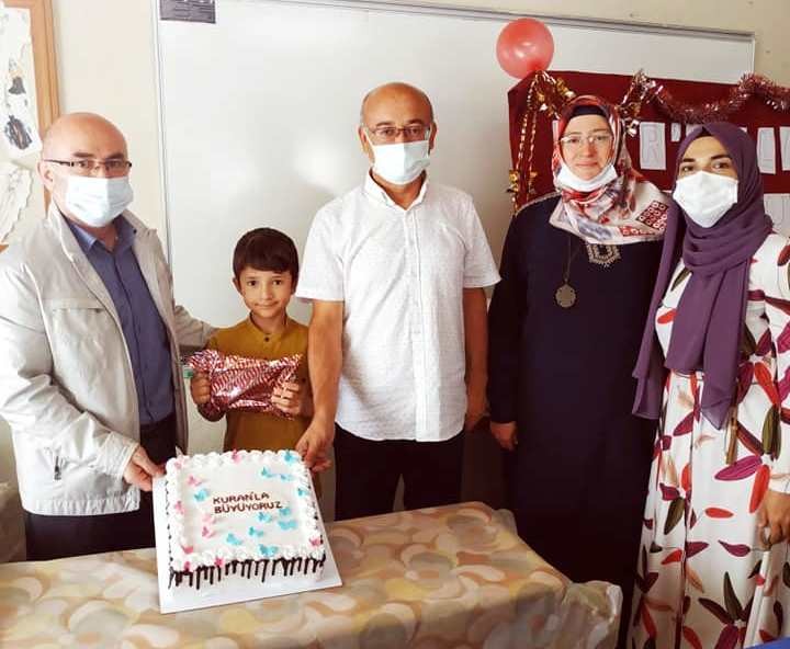 Kütahya’nın Hisarcık ilçesi Halk Eğitimi Merkezi tarafından yaz kursları kapsamında okul çağı çocuklarına yönelik açılan 64 saatlik Kur’an-ı Kerim öğrenme kursu sonunda etkinlik düzenlendi. Kurs öğretmeni Songül Gündüz nezaretinde 14 öğrencinin katılımıyla düzenlenen programda öğrenciler kurs boyunca öğrendikleri dua ve sureleri okuyup şiir ve ilahi söylediler. Programa katılan İlçe Milli Eğitim Müdürü İlhan Cebeci, kursa katılan öğrencileri tebrik etti. Müdür Cebeci ve Kurs Öğretmeni Songül Gündüz öğrencilere kırtasiye malzemesi hediye etti. Programda Kurs Öğretmeni Songül Gündüz tarafından Kur’an-ı Kerim’e geçen öğrenciler için yaptırılan pasta kesilip dağıtıldı.