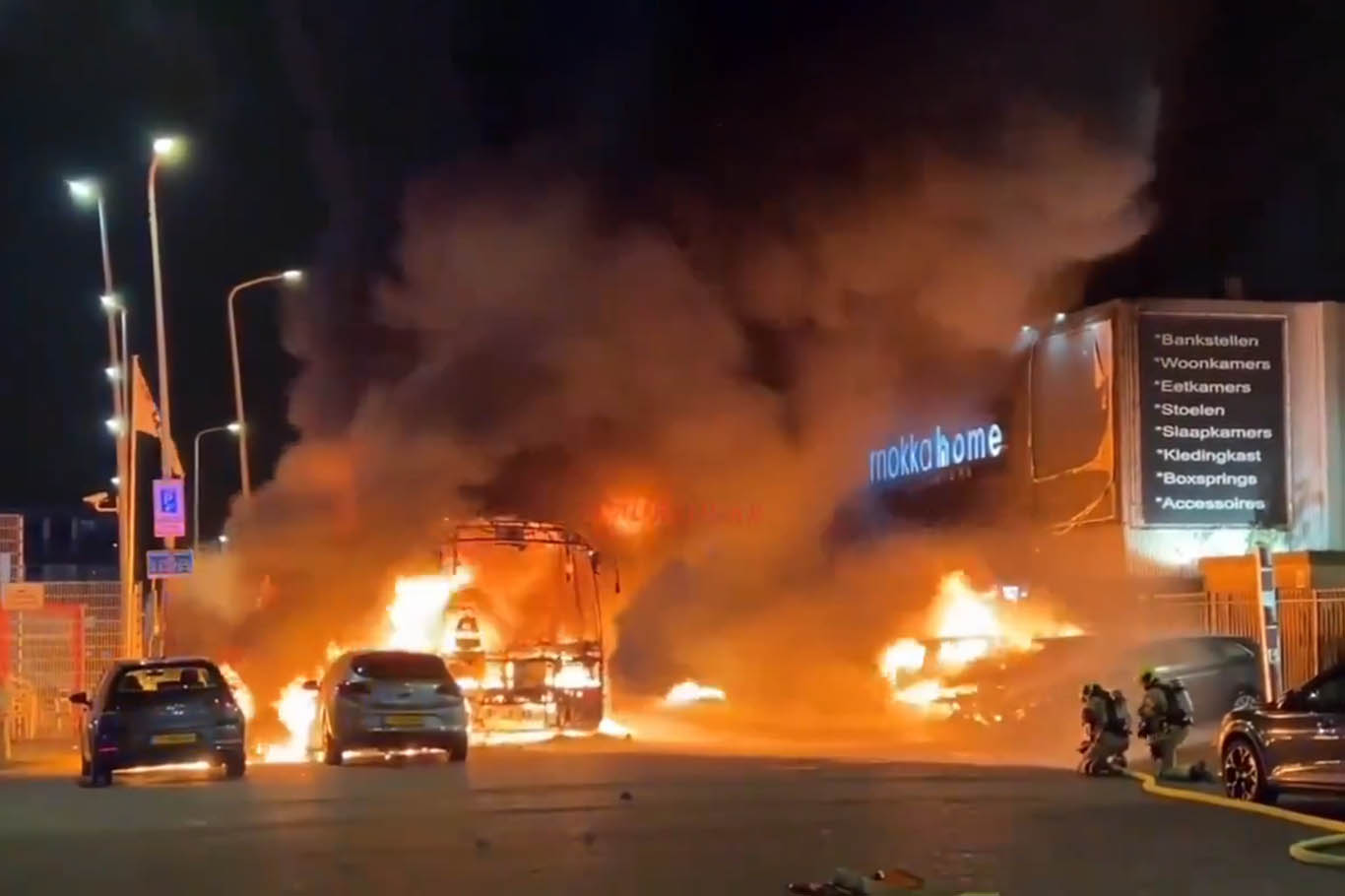 Çok sayıda polis aracını yakan protestocular, bazı otobüsleri de kundakladı.