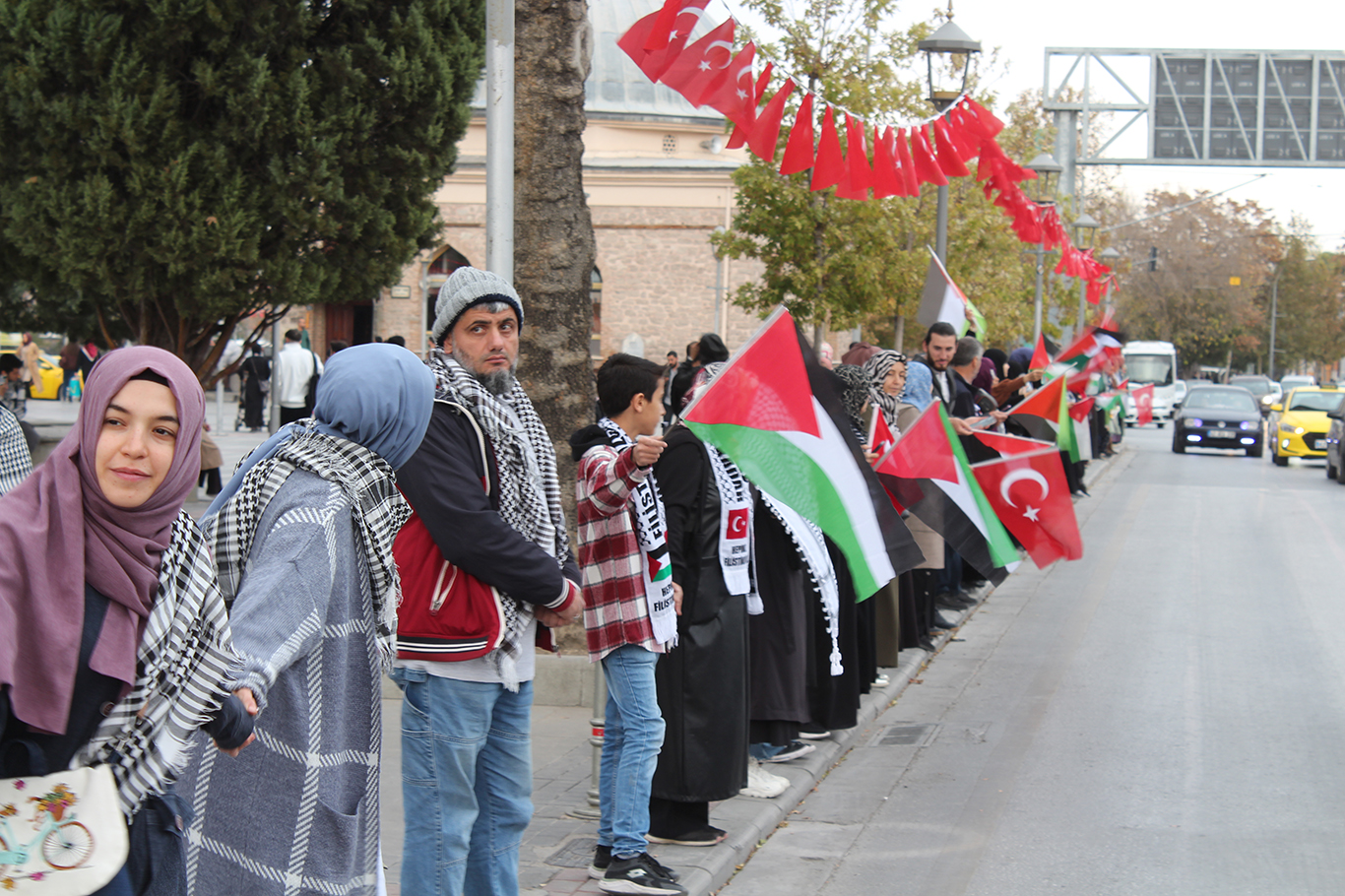 Sivil Toplum Kuruluşları öncülüğünde Mevlana Meydanında bir araya gelen Müslümanlar, kilometrelerce sıra oluşturup yürüyüş düzenledi.