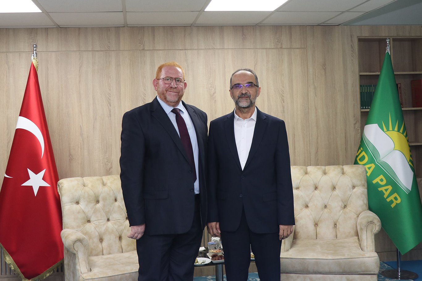 HÜDA PAR Dış İlişkilerden Sorumlu Genel Başkan Yardımcısı Mehmet Eşin'in de hazır bulunduğu görüşmede, İslam ümmetinin vahdeti, sorun ve sıkıntılarına çözüm bulunması adına fikir alıverişinde bulunuldu.