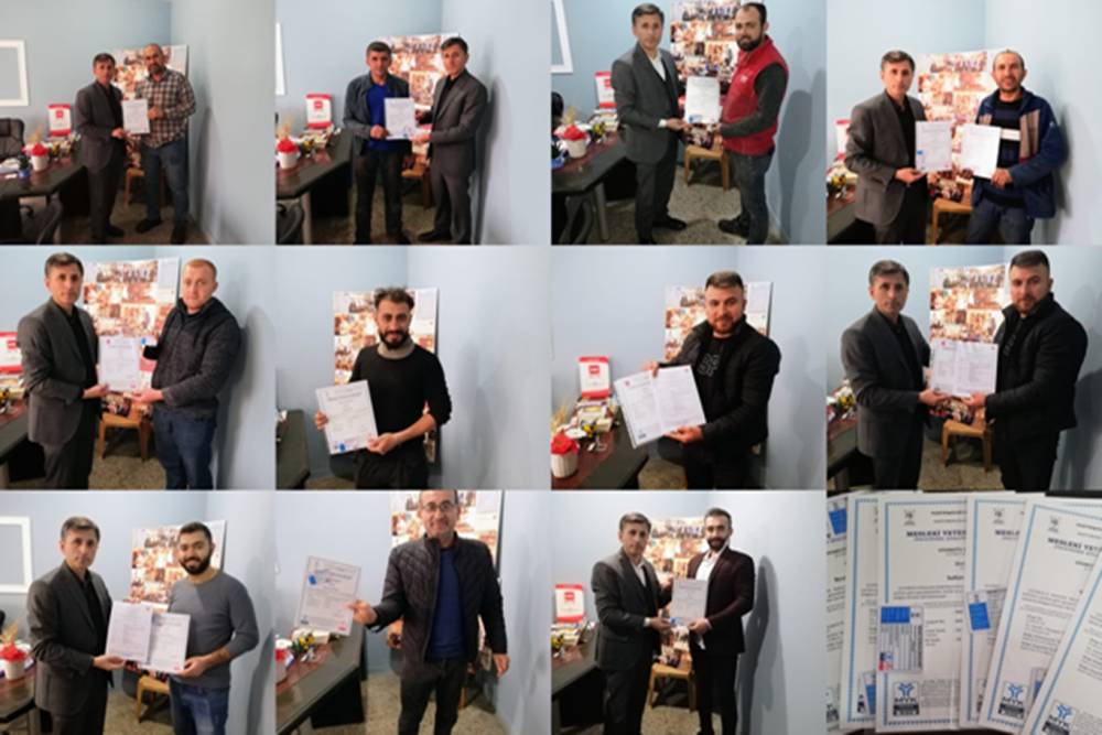 Sınavda başarılı olanlara belgeleri, yetkilendirilmiş kurumlar, Hedef Belgelendirme, MC Belgelendirme ve Rıfat Direkçi Eğitim ve Danışmanlık tarafından organize edilen sınava giren ve başarılı olan adaylara belgeleri teslim edildi. Otomotiv sektöründe 15 kişi, Kuaför sektöründe ise 13 kişi olmak üzere toplamda 28 kişiye MYK belgeleri verildi.