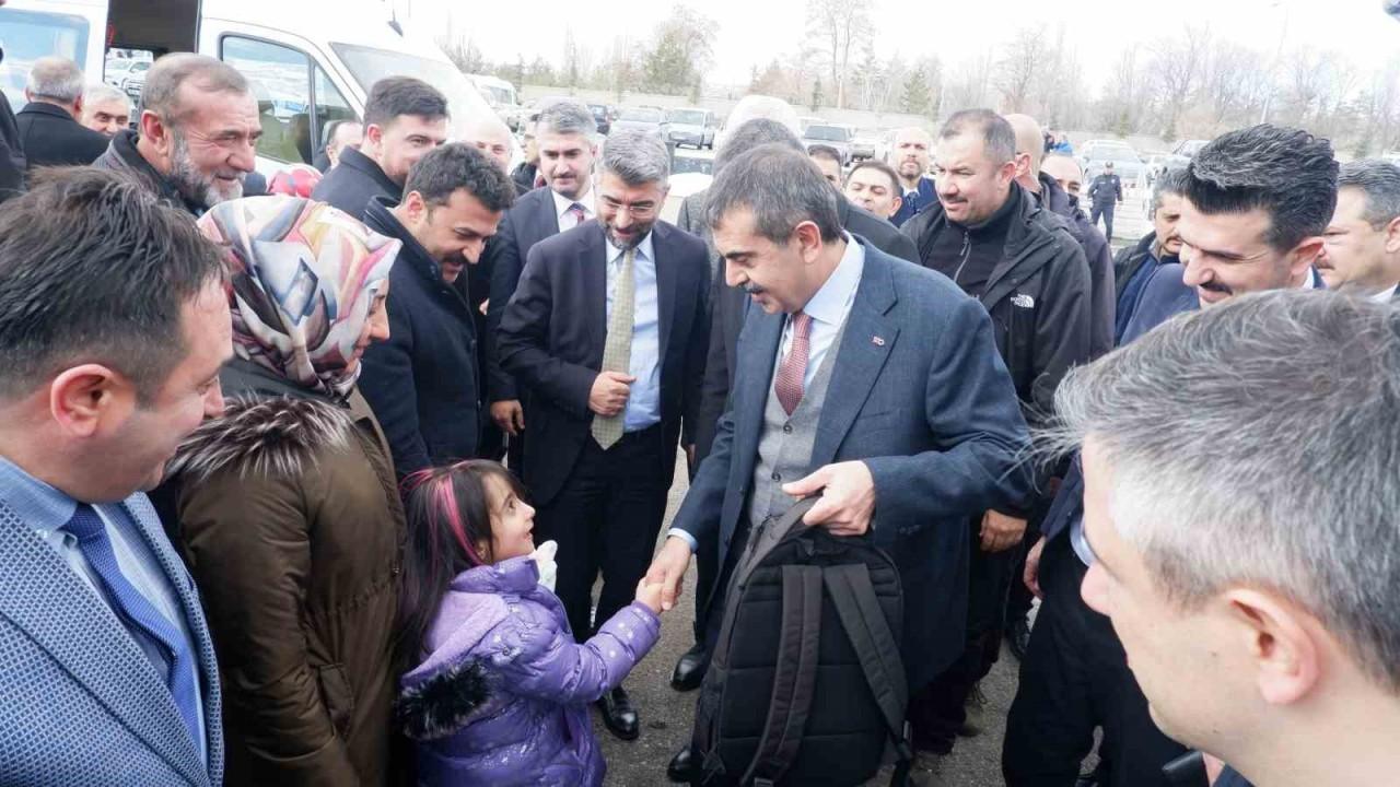 Bir dizi temaslarda bulunmak üzere memleketi Erzurum’a gelen Milli Eğitim Bakanı Yusuf Tekin, AK Parti Seçim Koordinasyon Merkezinin açılış programının ardından Aziziye ilçesinde düzenlenen kahvaltı programında mahalle muhtarları ile buluştu. Bakan Tekin, annesiyle birlikte kendisini karşılamaya gelen minik bir öğrenciye çanta hediye etti.