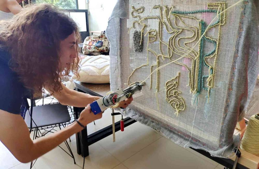 Sektöre yönelik etkinliklerin devam edeceğini belirten Doç.Dr. Nazan Avcıoğlu Kalebek, “Tuft halı modelleri arasında yer alan handtuft halılar, kişiye özel halı üretiminin gerçekleştirilmesi ile ortaya çıkmaktadır. Tasarım halı kullanmanıza yardımcı olan teknik sayesinde yaşam alanlarınıza kendi tercihlerinizi dilediğiniz gibi yansıtmanız mümkündür. Oldukça detaylı bir çalışma alanı sağlayan bu teknik, aynı zamanda halılar üzerinde amblem, logo, yazı gibi tasarıma dahil edilebilecek uygulamaların büyük bir başarı ile dokunmasını sağlamaktadır” diye konuştu. Tufting makinesinin hareketinin, basit bir dikiş makinesi iğnesinin hareketine benzediğini aktaran Halı Tasarımı Öğr. Gör. Naime Yüksel Çalık da şunları söyledi: “İplik bobinleri daha önceden dokunmuş zemin dokusu üzerine bukleler oluşturarak iğnelere iplik beslenmektedir. Beslenen iplik tabancanın çeşidine göre bukle ya da kesik hav şeklinde olabilmektedir. Oluşturulan bu yüzeyin arkasına ikinci bir yüzey, jüt ya da sentetik lateks esaslı bir malzeme kullanılarak yapıştırılmaktadır. HandTuft Halı uluslararası halıcılık terminolojisinde vurgu sistemiyle oluşturulan, renk ve desenleriyle özgünlük sağlayan halı türünün adıdır.” Etkinlikte, Tuft halı tezgahı, tabanca çeşitleri, halıda kullanılan zemin kumaşı ve hav iplikleri hakkında teknik bilgilere değinen Sanat Atölyesi sahibi Neslihan Ata koordinatörlüğünde tuft halı üretimi yapıldı.