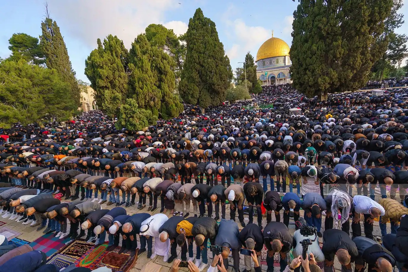 Mescid-i Aksa İmam Hatibi Şeyh Yusuf Ebu Suneyne tarafından okunan bayram hutbesinde, işgal rejiminin Gazze'de işlediği katliam ve soykırıma dikkat çekilerek İslam dünyasının Gazze ve Filistin halkını yalnız bıraktığını, bunun büyük bir utanç olduğunu ifade etti.