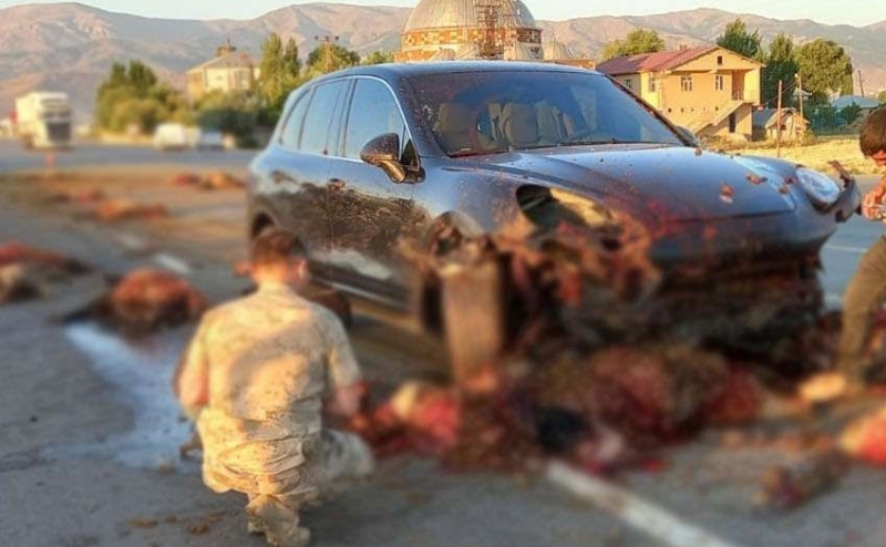 Yayladan dönüş yapan çevre köylerine ait koyun sürüsü, ekili tarlalara zarar vermemek için kara yolunda giderken, plakası ve sürücüsünün ismi öğrenilmeyen bir otomobil sürüye daldı.