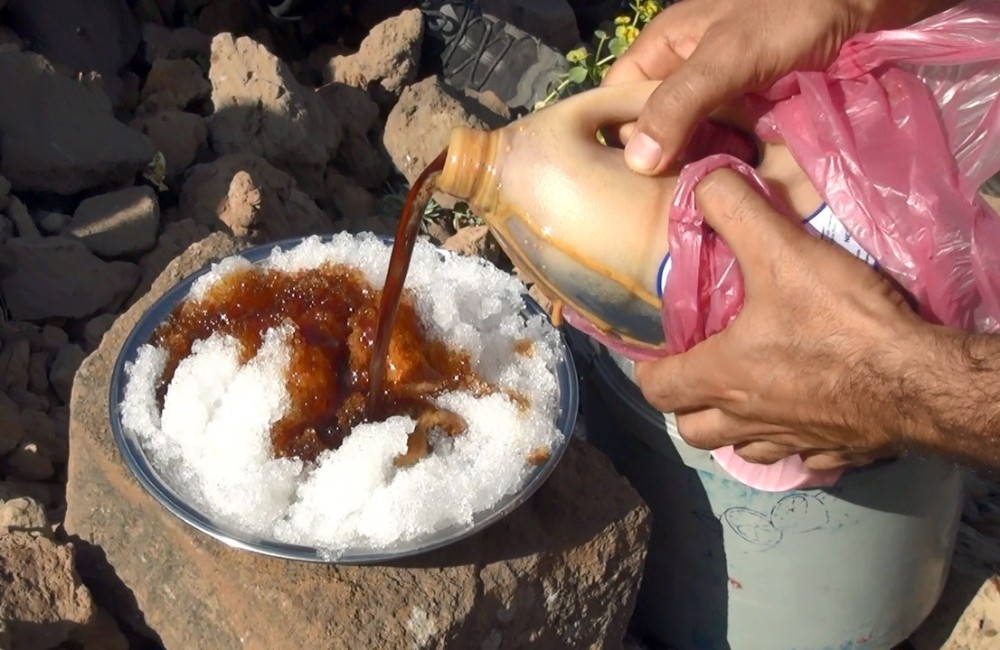 Bitlis’te vatandaşlar ve yaylacılar yüksek rakımlı dağların tepesinde bulunan karlara kattıkları pekmezle hazırladıkları ‘karlı pekmez’le serinliyor. Kavurucu sıcakların etkisini gösterdiği Doğu Anadolu’nun bazı yüksek dağlarında bulunan kar kütleleri doğal serinleme yiyeceği olarak kullanıyor. Bitlis’te gezginler ve doğa fotoğrafçıları ile yüksek yaylalarda hayvancılık yapan göçerler, dağların tepesinde bulunan karlara pekmez döküp yiyerek serinliyor. Bazı vatandaşlar ise dağlardan poşet ve bidonlara doldurdukları karları evlerine götürüp tüketiyor. Bitlis’te de bir grup doğa fotoğrafçısı ve gezgin, kavurucu yaz sıcağında karlı pekmez yemek için 3 bin metre rakımlı Nemrut Dağı’na tırmandı. Doğa fotoğrafçıları ve gezginler, Nemrut Dağı zirvesinde yanlarında götürdükleri pekmezi karla karıştırıp hazırladıkları karlı pekmezi yiyerek serinledi. Karlı pekmezin Lokman Hekim’in ilaçlarından olduğunu ve çoğu kişinin şifa niyetine yediğini belirten gezginler her yıl Nemrut Dağı’na tırmanarak karlı pekmez yediklerini söyledi. Nemrut Dağı’na tırmanan doğa fotoğrafçısı İskender Selçuk, yaz mevsiminde dağların zirvelerindeki karları pekmezle karıştırıp yiyerek serinlediklerini söyledi. Selçuk; “Şu an da Nemrut Krater Gölü’nün zirvesindeyiz. 3 bin 200 rakım yükseklikte. Sabahın erken saatlerinde bu zorlu yolculuğa çıktık sürekli yaptığımız bir şey. Zirveye ulaşmak için bir sürü engellerden geçtik. Ama sonunda varış noktamız olan henüz Nemrut Dağı’nın eteklerinde olan karla buluştuk. Bir de yanımıza aldığımız pekmezi karla buluşturup enfes tadına ulaştığımız karlı pekmez ya da yöresel adla karsambaç bazı yerlerde karlı pekmez olarak tabir edilen adlandırılan bu güzel tadı tatmış olduk herkesin bunu tatmasını dileriz” dedi. Karlı pekmezi yerinde yemenin bir başka güzel olduğunu belirten bir diğer gezgin ve doğa fotoğrafçısı Enes Koçar da, “Bugün Nemrut Dağı tırmanışı yaptık. 3 bin 200 rakımdayız şuan. Karla buluştuk bu sıcak havada. Yanımızda getirdiğimiz pekmezle karlı pekmez yaptık. Havanın sıcak olması nedeniyle o karlı pekmezi yedik ve bayağı serinledik. Herkesin buraya gelip karlı pekmez yemesini tavsiye ediyorum” ifadelerini kullandı. Bitlis’in Ahlat ilçesine Bağlı Serinbayır köyü yaylalarında göçerlik yapan gençlerden Nurullah Erkin de dağ başında karlı pekmez yemeğinin çok zevkli olduğunu belirterek, “Her gün olduğu gibi bugün yine kar götürmeye geldik. Karı bidonlara koyup götürüyoruz. Ayrıca arkadaşlarla karlı pekmez yaptık. Çok güzel bu yaz gününde bizi serinletti” diye konuştu. Bir diğer göçer Yunus Erkin de, “Nemrut Dağı’nın hemen hemen zirvesine çıkmış bulunmaktayız. Kar toplama geldik. Kar toplamaya gelirken yanımızda pekmez getirip karlı zirvede karlı pekmez yapıp yiyoruz. Çok müthiş bir tat oluyor, herkese tavsiye ederim” dedi. Pekmez ve karın karışımıyla oluşturulan doğal serinlik yemeği Bitlis yöresinde ‘karlı pekmez’ olarak adlandırılırken, kimi bölgelerde ‘kar helvası’, kimi bölgelerde de ‘karsambaç’ olarak adlandırılıyor.