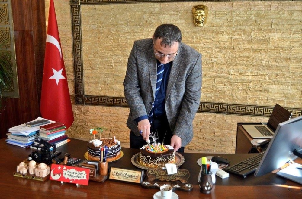 Batman’ın Hasankeyf kaymakamlığındaki görevli personel, idareciler günü münasebeti ile Kaymakam Faruk Bülent Baygüven’e pasta sürprizi hazırladı. Kaymakamlık yazı işleri müdürü ve özel kalem personeli tarafından hazırlanan sürpriz pasta, Kaymakam Baygüven’in makam odasına bırakıldı. Makam odasındaki pastayı gören Kaymakam Baygüven kısa süreli şaşkınlık yaşadı. Kaymakam Baygüven, bir anda odasında yazı işleri müdürü ile özel kalem müdürünü görünce şaşırdığını belirterek, yapılan sürprizden dolayı personeline teşekkür etti. Kısa bir şaşkınlığın ardından kendisine sürpriz edilen pastayı kesen Kaymakam Baygüven, kestiği pastayı personellerine ikram etti.