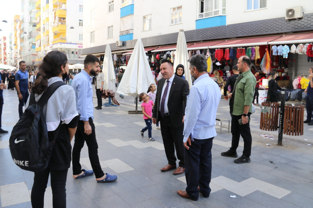 Aynı bölgede bulunan camide Cuma namazını kıldıktan sonra Sakarya Caddesi’ne çıkarma yapan Beyoğlu,caddeyi baştan sona kadar gezerek esnaflarla ticari yaşamın durumu hakkında değerlendirmelerde bulundu. Caddenin modernize edilmesinin günlük ticaret ve alışverişe oldukça olumlu etkide bulunduğunu belirten esnaflar, çeşitli konulardaki talep ve şikayetlerini de Beyoğlu’na aktardı.