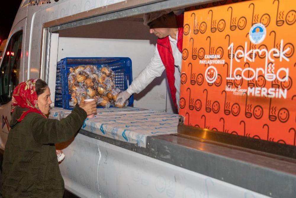 Mersin Büyükşehir Belediyesi tarafından, kent genelindeki 60 farklı noktada gerçekleştirilen ‘1 Ekmek 1 Çorba’ uygulaması, soğuk kış aylarında henüz gün doğmadan tarla ve bahçelere çalışmaya giden tarım işçileriyle de buluştu.