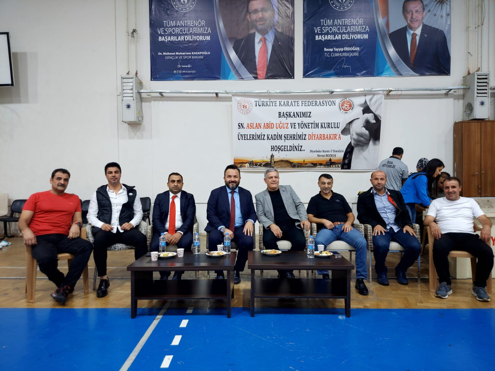 "Diyarbakır bölge karetinin merkezi olacak" Türkiye Karate Federasyonu Başkanı Aslan Abid Oğuz, Diyarbakır’ın son yıllarda karate sporunda büyük bir atılım gerçekleştirdiğini ve kenti karate sporunda bir merkez il haline dönüştürmeyi düşündüklerini söyledi. Oğuz, “Burada bir ilki gerçekleştiriyoruz. Sadece Diyarbakır için değil, Türkiye için bir ilk. Daha önce Antrenörlere yönelik seminerler oluyordu. Biz ilk defa burada elit sporcu dediğimiz guruba, yani gelecek vaden sporcularımızın ayağına gelerek Milli takım Antrenörümüzü onların ayağına getirerek burada seminer yaptırıyoruz. Karateyi tüm yurda yaymak görevimiz, tabii burada doğuya ve güneydoğu illerine ayrı bir pozitif ayrımcılık yapmamız gerekiyor. O yüzden çocuklarımızın ayağına biz geldik. Biliyorsunuz en son 2019 yılında burada bir ümit genç ve U 21 Türkiye şampiyonası yapılmıştı. Diyarbakır için çok önemli bir gelişme olmuştu. Bugün yine bir dönüm noktası diyebiliriz. Son 10 yılda Diyarbakır’da yetişen sporcular, Milli takımlardaki varlıkları ve Milli takımlarda aldıkları dereceler Diyarbakır’ın doğru adres olduğunu gösterdi. Şimdi de burada Milli takımdan sporcularımız var. Milli takımı zorlayan sporcularımız var. Bizim amacımız burayı Güneydoğu’daki sporcuların bir merkezi haline dönüştürmektir. Belki de uluslar arası bir şampiyona getirerek Diyarbakır’ı burada bir merkez haline getirmek istiyoruz. Burada da zaten amacımız, ilk gün dan eğitim semineri vardı. Civar illerden gelenler oldu. 9 ilden gelenler oldu. Yine aynı şekilde burada da sporcuları değerlendireceğiz. Milli takım Antrenörümüz burada, onların teknik taktiklerini kontrol ediyor. Uygun gördüklerini mutlaka not edecektir. Bu iyi bir gelişme” dedi.