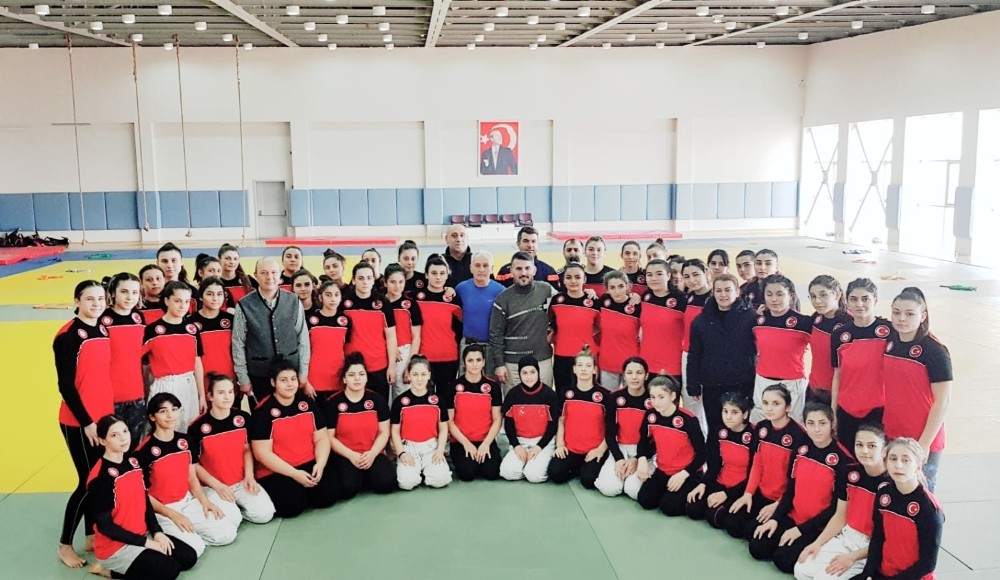 Ümit Milli Kadın Judo Takımı aday kadrosu, Trabzon TOHM’deki kamp çalışmalarını tamamladı. Korona virüs salgını nedeniyle uzun bir aradan sonra kampa alınan Ümit Milli Kadın Judo Takımı aday kadrosu, Trabzon’daki çalışmalarının sonuna geldi. TOHM’deki iki haftalık antrenmanlarında, kondisyon, dayanıklılık ve randori ağırlıklı tempo tutan aday kadronun çalışmalarını, SHGM Sporcu Yetiştirme Daire Başkanı Selçuk Çebi ile Trabzon GSİ Müdürü Birdal Öztürk ziyaret ederek yerinde izledi. Teknik kadro ve antrenörlerden bilgi alan SYD Başkanı Çebi, sağlık yönünden zorunlu bir aranın ardından gerçekleşen kampın ümit kadın judocularına yararlı olduğuna ve onların hedeflerine motive olmalarında fayda sağlayacağını belirtti. GSİ Müdürü Öztürk ise kampa ev sahipliği yapmaktan mutluluk duyduklarını ifade ederek, judoculara antrenman bitiminde baklava ikram etti.