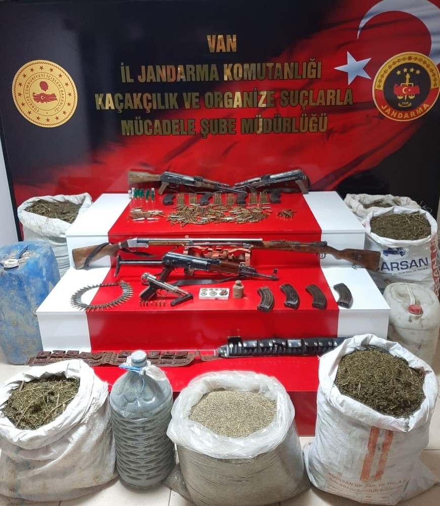 Van’ın Gürpınar ilçesinde 6 adreste yapılan aramada silah, mühimmat ve uyuşturucu ele geçirildi. Van Valiliğinden yapılan açıklamada, İl Jandarma Komutanlığı ekiplerince, uyuşturucu madde ve silah mühimmat kaçakçılığı ile mücadele faaliyetleri kapsamında devam eden istihbari çalışmalar neticesinde; 27 Kasım’da Gürpınar ilçesi Çepkenli Mahallesi Yukarı Beşparmak mezrasındaki 6 adreste eş zamanlı arama yapıldığı belirtildi. Açıklamada, “İcra edilen adli arama sonucunda; 3 adet Kaleşnikov piyade tüfeği, 1 adet mavzer tüfek, 1 adet av tüfeği, 1 adet kurusıkı tabanca, 333 adet 7.62 mm çapında fişek, 32 adet mavzer fişeği, 7 adet 9 mm çapında tabanca fişeği, 12 adet av tüfeği fişeği, 8 adet kaleşnikov şarjörü, 54 kilo 300 gram kubar esrar, 70 kilogram kenevir tohumu ve 1 adet terazi ele geçirildi. Olayla ilgili gözaltına alınan 2 şüpheli şahıs hakkında adli soruşturma devam etmektedir” denildi.