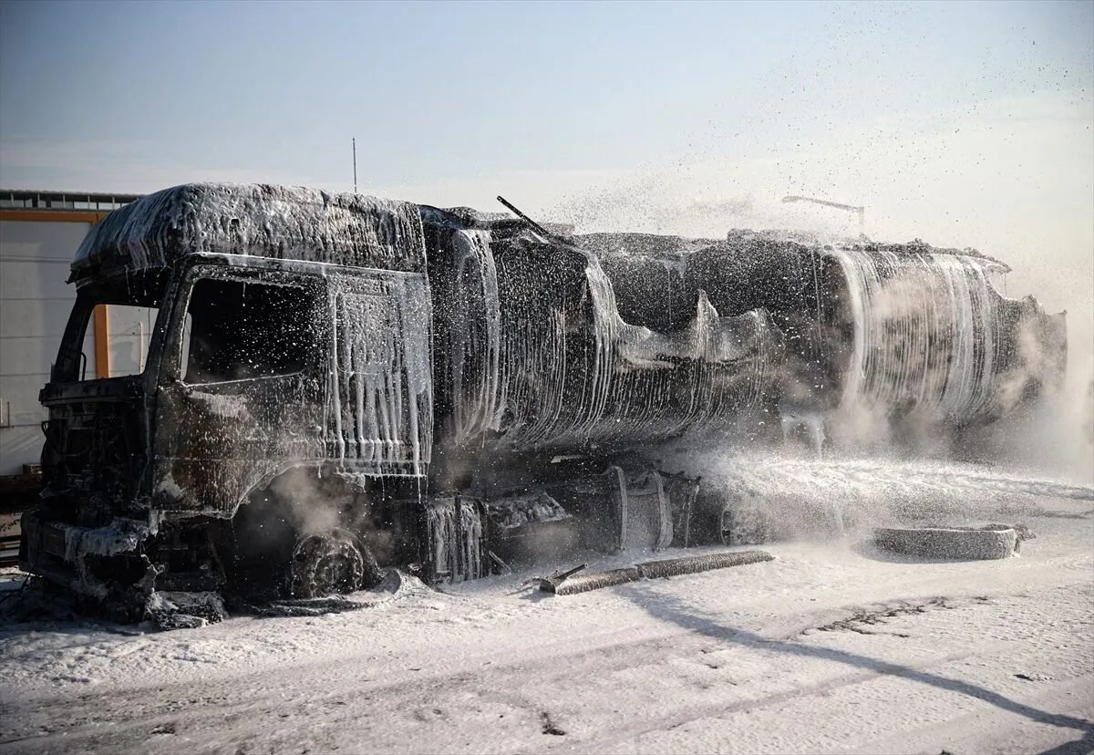 Mersin'de akaryakıt yüklü tanker, alev alev yandı. Yangın, itfaiyenin müdahalesi ile söndürüldü. O anlar kameraya yansıdı.